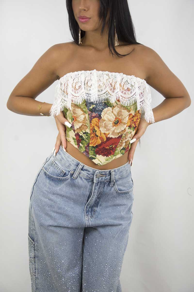 TOP ROSA CON PIUME