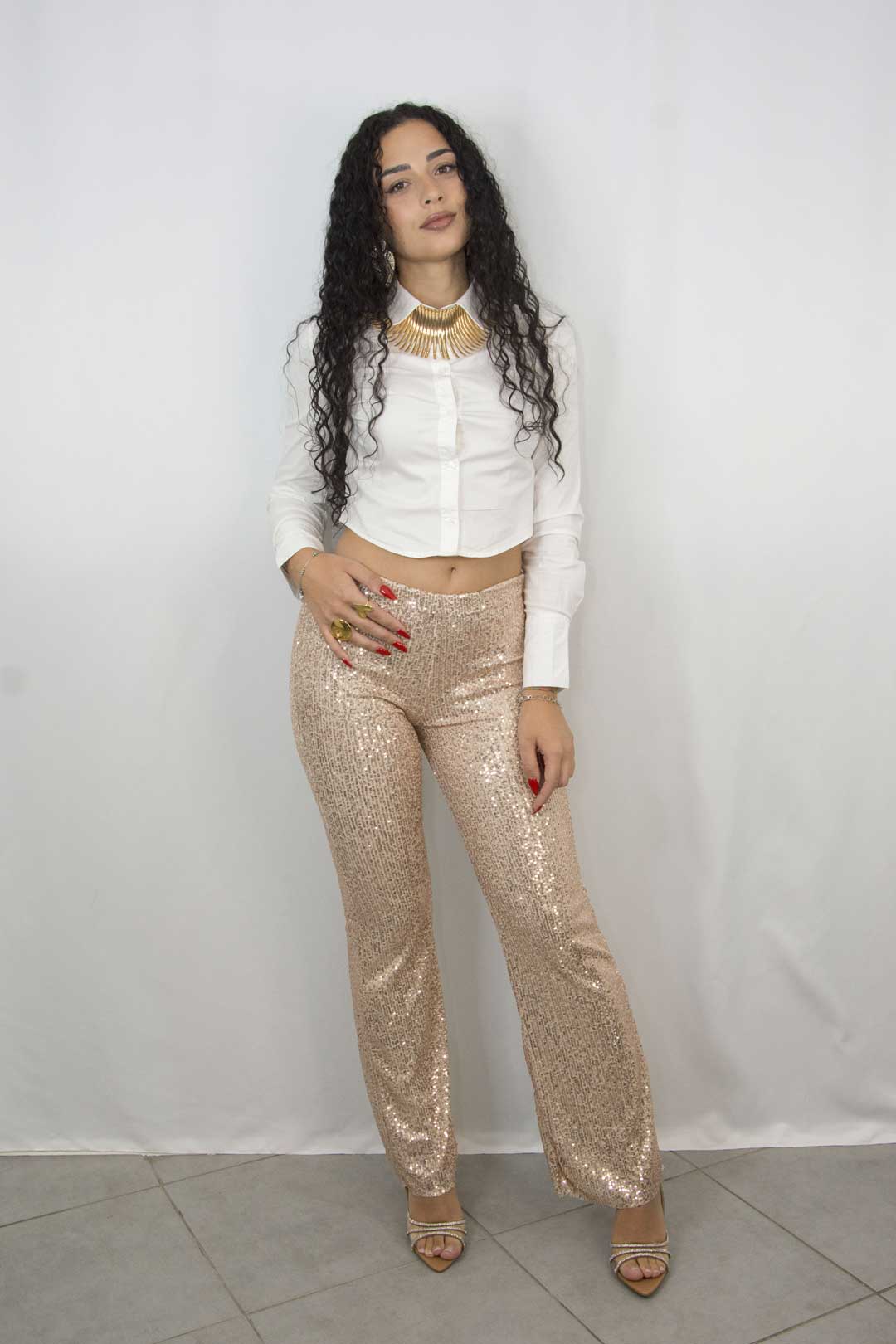 Pantalone interamente ricoperto di paillettes